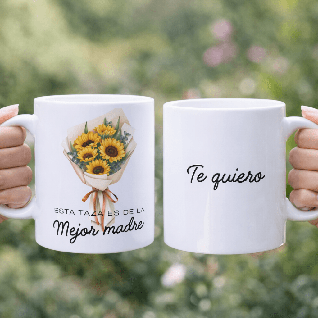 Nuestra taza personalizada de 350 ml con un hermoso diseño de girasol es el regalo perfecto para la mejor madre. Cada vez que tome su bebida favorita, estará rodeada por el cálido y alegre diseño del girasol, símbolo de amor, admiración y gratitud. Personalizada con un mensaje especial para recordarle cuánto la aprecias. Esta taza no solo es práctica, sino también un gesto que llenará sus días de luz y alegría. ¡Un detalle único para la mujer más importante de tu vida!